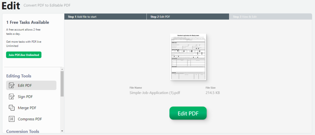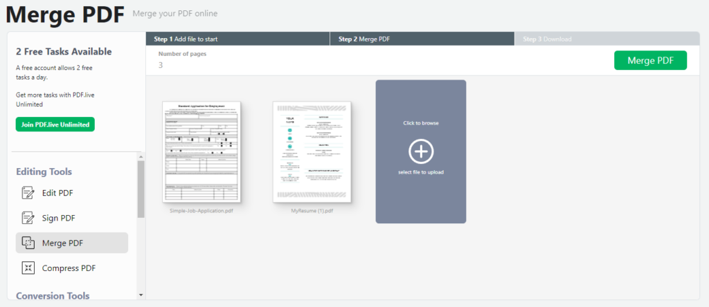 In this section, we cover how to add pages from one PDF to another using the Merge feature on PDF.Live.